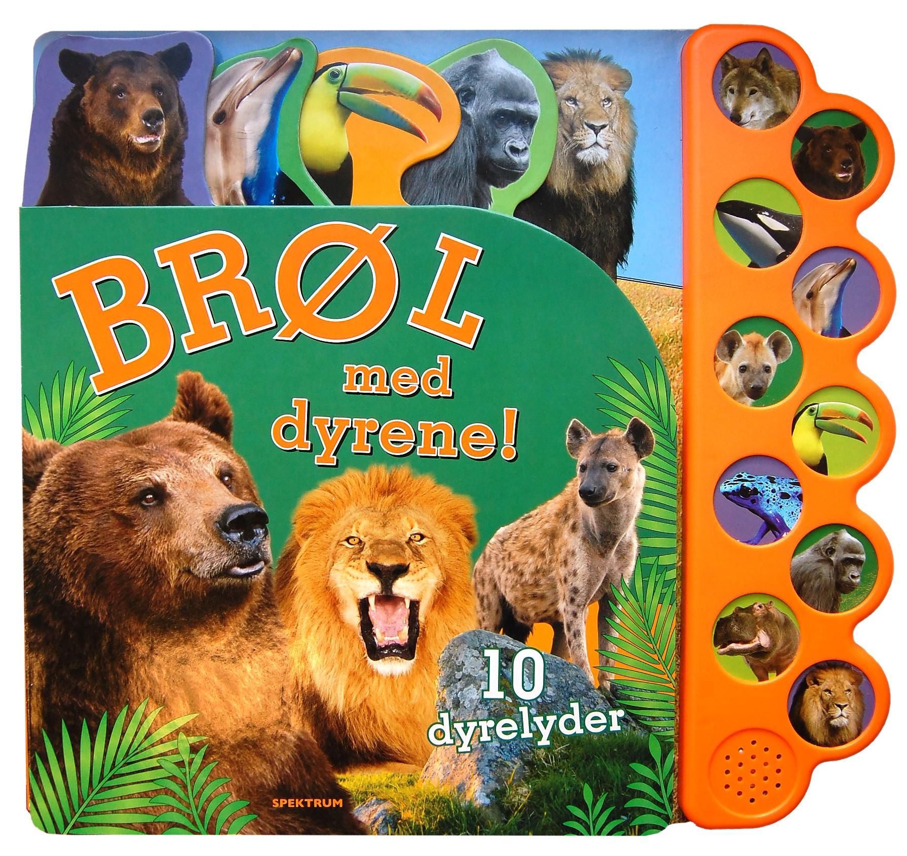 Ingen smårollinger klarer å holde fingrene fra de ti lydknappene og etterligne de kjente dyrelydene i denne boka, som har fargerike fotografier på hver eneste side. De solide fanene gjør det lett for barna å finne fram til yndlingsdyrene sine, og korte tekster gir faktakunnskap som gir dybde i brølet.