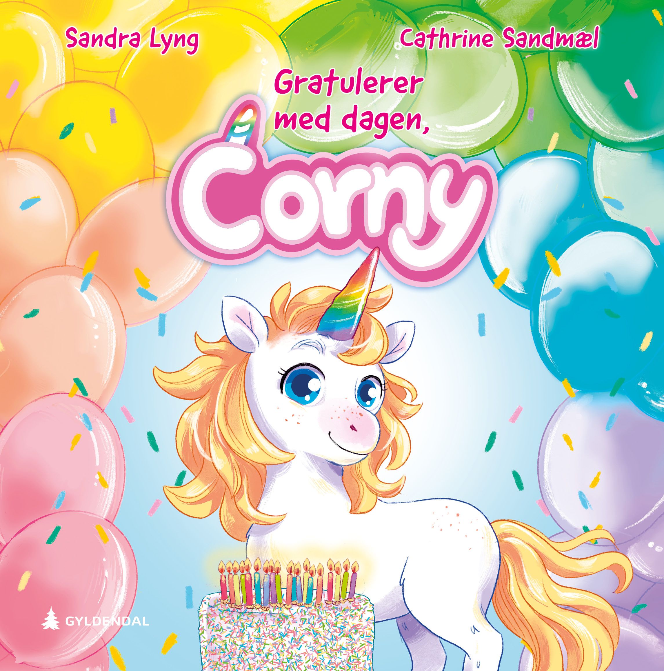 Velkommen til enhjørningen Cornys regnbueunivers! I dag har Corny bursdag, og det skal være et stort bursdagsselskap. Corny holder på å sprekke av glede da gjestene kommer. Men vent nå litt … Hvor er bestevennene Deni og Leni fra Regnbueklubben? Av og til blir ikke bursdager helt sånn som man hadde tenkt. Våren 2020 lanserer vi de to første bøkene i en ny serie om enhjørningen Corny. Artist Sandra Lyng debuterer som forfatter med denne bildebokserien, som handler om en liten enhjørning med følelsene utenpå kroppen. Du kan snart også høre Sandras sanger om Corny på Spotify og YouTube.